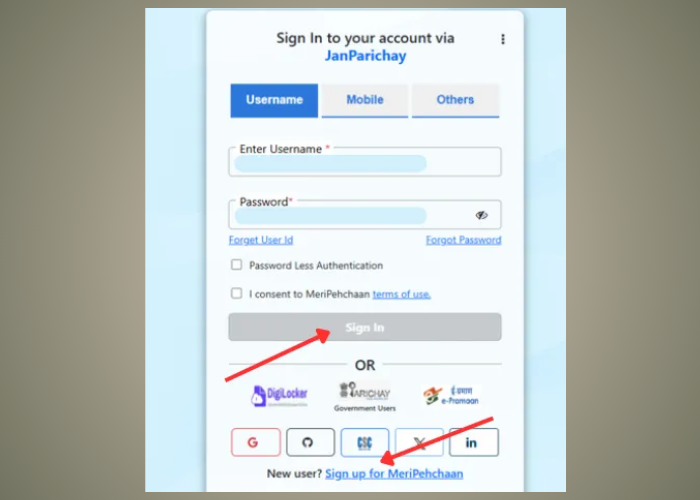 - If you have an account, click on ‘epds bihar gov in login.’ Enter your username and password through the ‘Meri Pehchaan’ portal. If you are not registered, click on ‘Sign up for Meri Pehchaan,’ create an account, and then log in.
