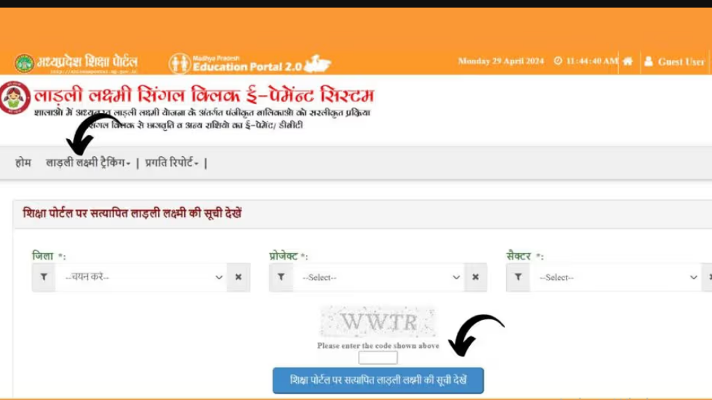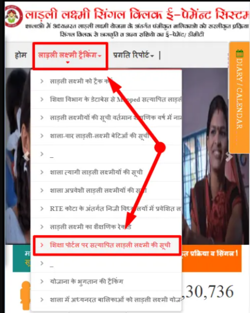 - सबसे पहले आपको लाड़ली लक्ष्मी योजना की आधिकारिक वेबसाइट पर लॉगिन करना होगा।