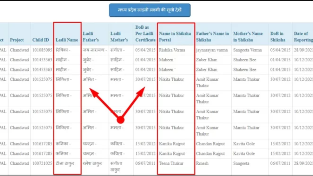 | योजना का नाम | लाड़ली लक्ष्मी योजना |